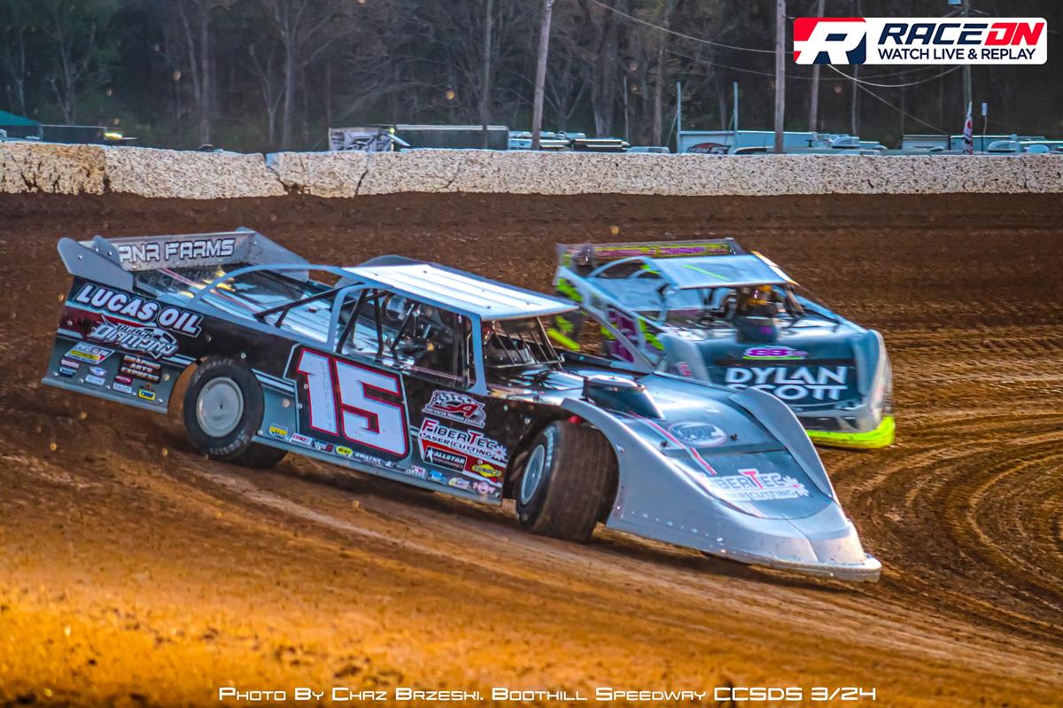 Among 31 Comp Cams Super Late Models checked in, both drivers raced their way into the 40-lap main event where Clayton would record a 12th-place with Jarret finishing right behind him in 13th.