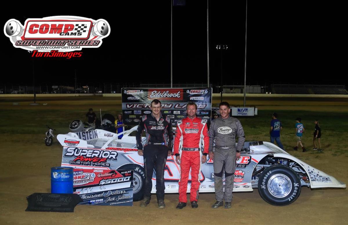 Clay laid down the second-quickest lap in his qualifying group before taking the checkered flag in his heat race. For the $5,000-to-win main event, Jarret started 15th while Clay started on the front-row and drove to a podium finish behind Tony Jackson Jr. and Timothy Culp. Jarret finished 13th.